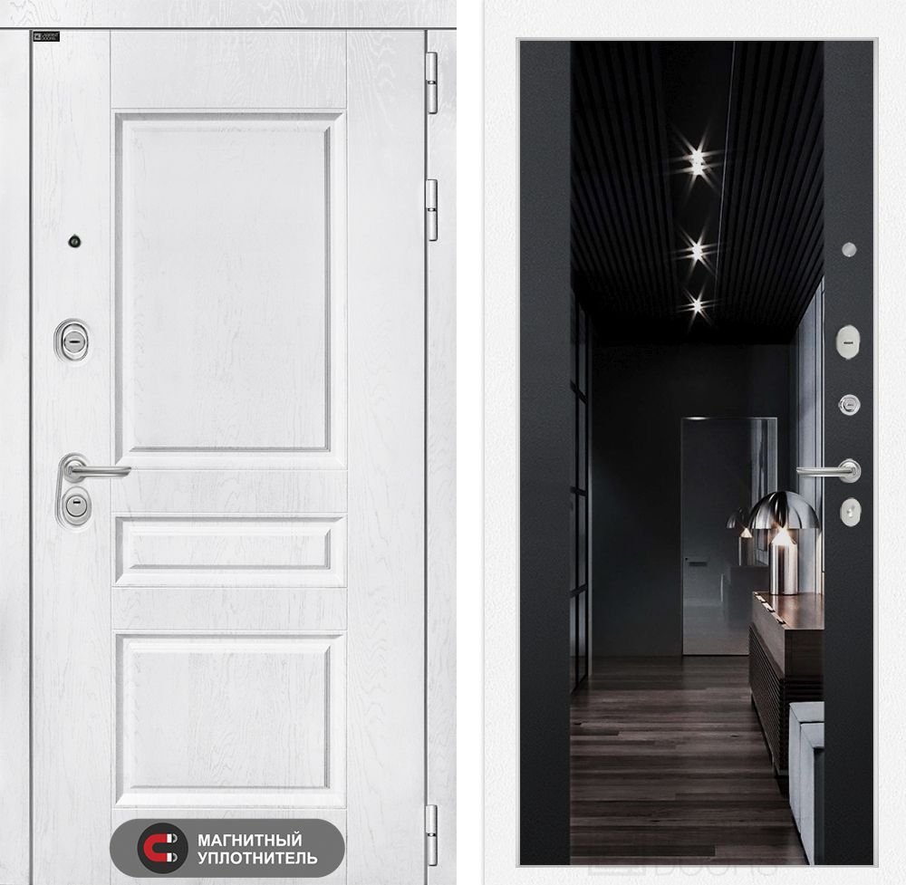 Входная дверь Лабиринт VERSAL с Зеркалом 18 - Бетон светлый сочетает в себе стиль и безопасность. Ее толщина составляет 125 мм, а металлический каркас из стали 1,5 мм дополнен мощными ригелями и утеплителем на базе базальтовой плитки. Уникальная отделка MDF в цвете "Бетон светлый" и наличие зеркала добавляют элегантности в любое пространство. Дверь укомплектована высококачественными замками Гардиан и Border, обеспечивающими защиту 4-го класса безопасности. Подходит для квартир и офисов. Доставка по Москве и всей России. Качество проверенное временем!