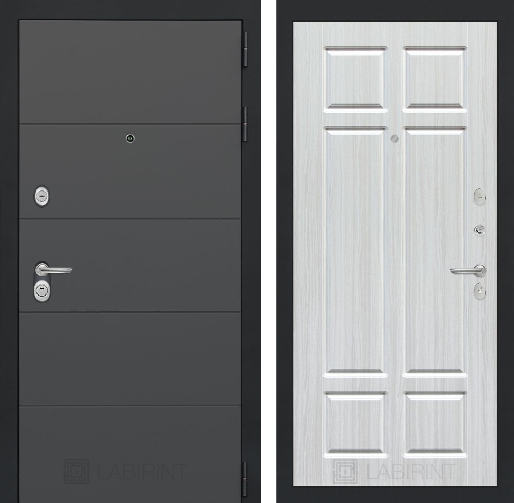 Входная дверь Лабиринт ART графит 01 - Сандал белый, стекло белое идеально сочетает стиль и безопасность. Подходит для установки в квартиры и офисы, она отличается прочной конструкцией с использованием металла толщиной 1,5 мм и утепленными ребрами жесткости. Три контура уплотнения обеспечивают отличную тепло- и звукоизоляцию. Оборудована высококачественными замками Kale, что гарантирует надежность. Элегантное сочетание графитового внешнего декора с белоснежной внутренней отделкой делает эту дверь настоящим украшением вашего интерьера. Доставка по Москве и всем регионам РФ.