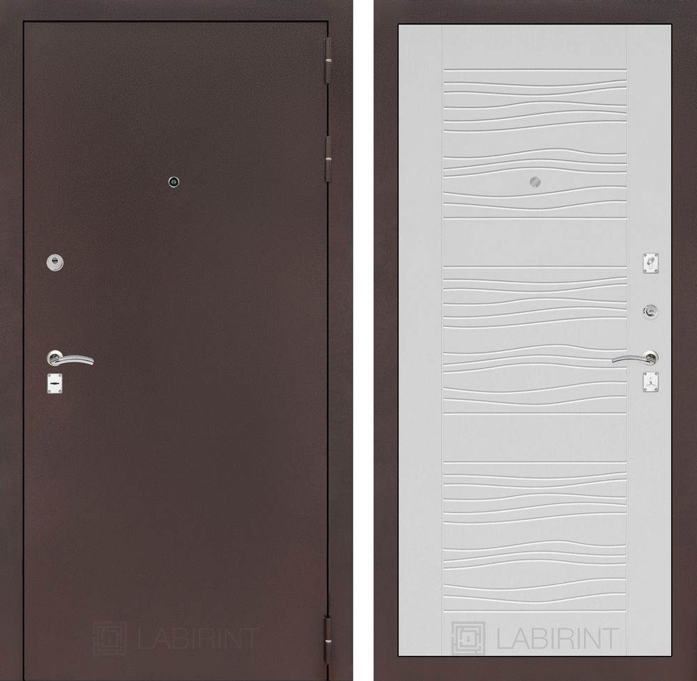 Входная дверь Лабиринт CLASSIC антик медный 06 - Белое дерево: прочная, утепленная и стильная модель с декором из MDF