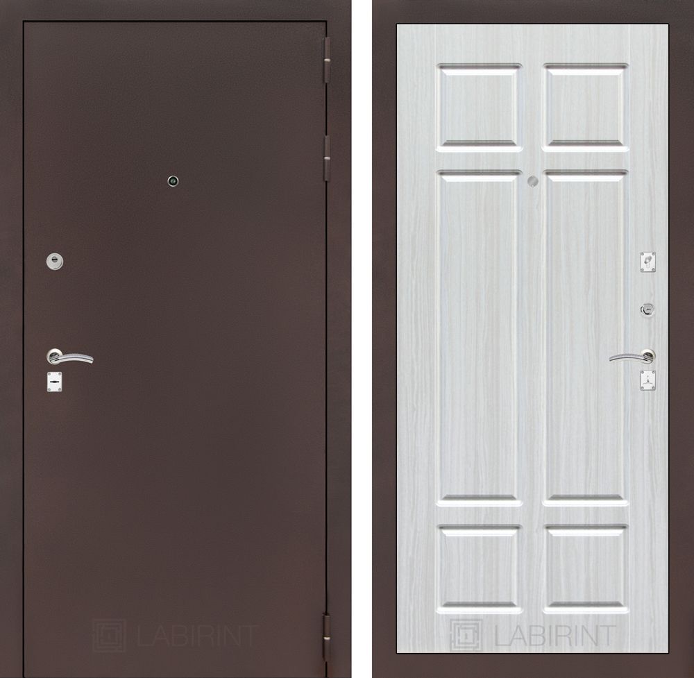 Входная дверь Лабиринт CLASSIC антик медный 08 с отделкой "Кристалл вуд" идеально подходит для установки в квартиру или офис. Эта дверь сочетает в себе высокий уровень безопасности и современный дизайн, что делает её отличным выбором для любых помещений.