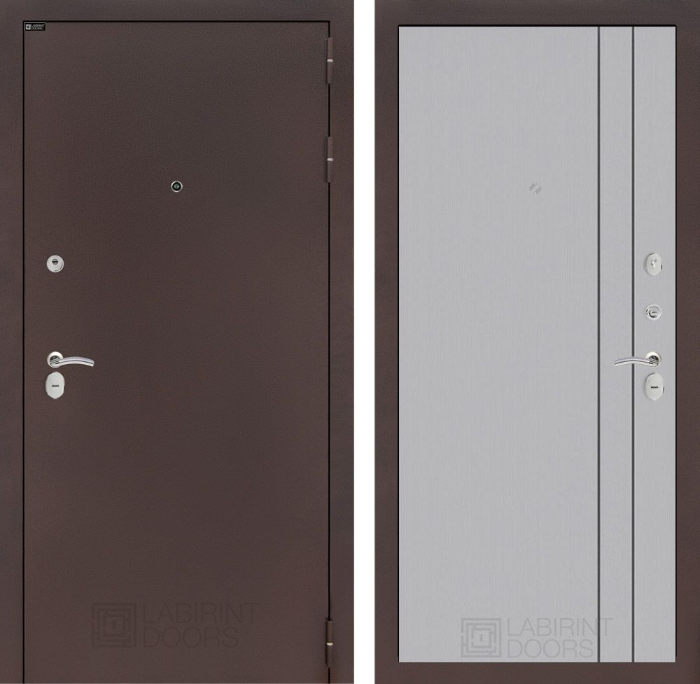 Входная дверь Лабиринт CLASSIC антик медный 10 - Серый рельеф софт