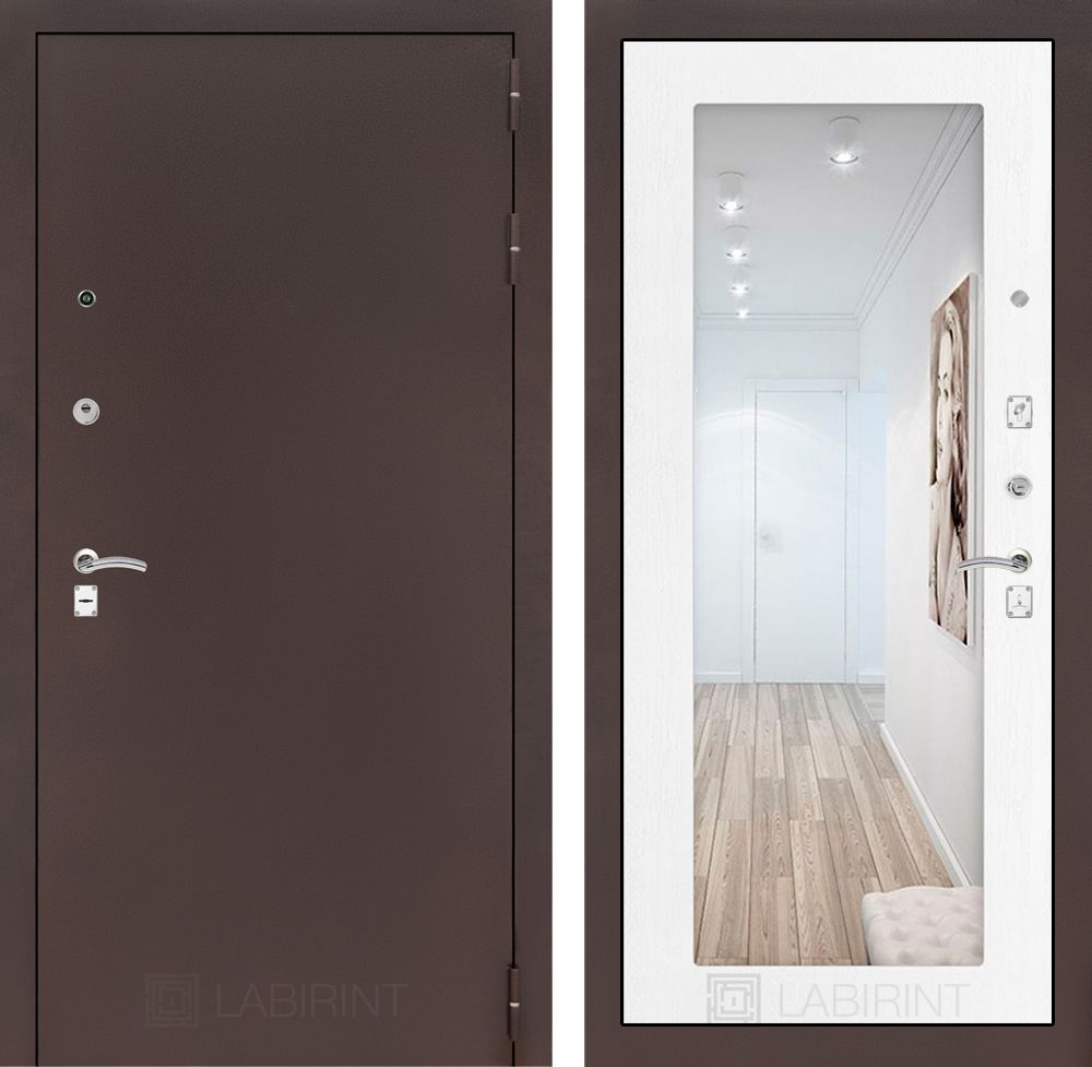 Входная дверь Лабиринт CLASSIC антик медный с Зеркалом 18 - Белое дерево
