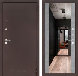 Входная дверь Лабиринт CLASSIC антик медный с Зеркалом Максимум - Бетон светлый