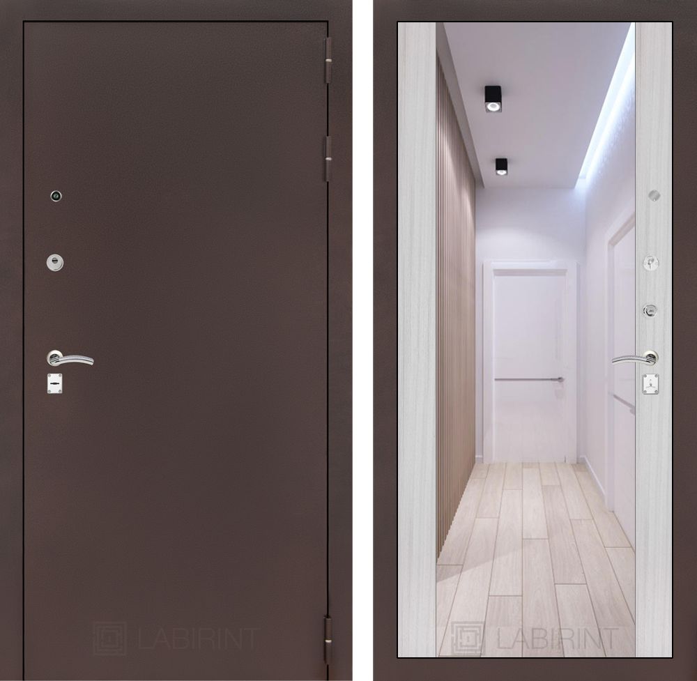 Входная дверь Лабиринт CLASSIC антик медный с Зеркалом Максимум - Сандал белый