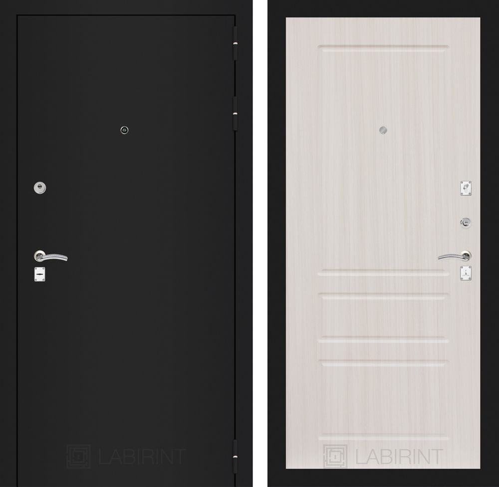 Входная дверь Лабиринт CLASSIC шагрень черная 03 - Сандал белый