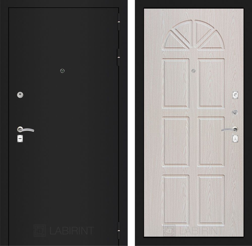 Входная дверь Лабиринт CLASSIC шагрень черная 01 - Сандал белый идеально подходит для квартир и офисов. Изготовленная из прочной стали толщиной 1,5 мм с утеплением базальтовой плитой, она гарантирует надежную защиту. Дверь имеет три контура уплотнения и замковый карман, что обеспечивает отличные тепло- и звукоизоляционные свойства. Надежные замки Гардиан 30.11 и 32.01 обеспечивают высокий уровень безопасности. Эстетичный внешний вид с покрытием "Шагрень" и внутренней панелью цвета "Сандал белый" станет отличным дополнением любого интерьера. Доставка по Москве и всей России.