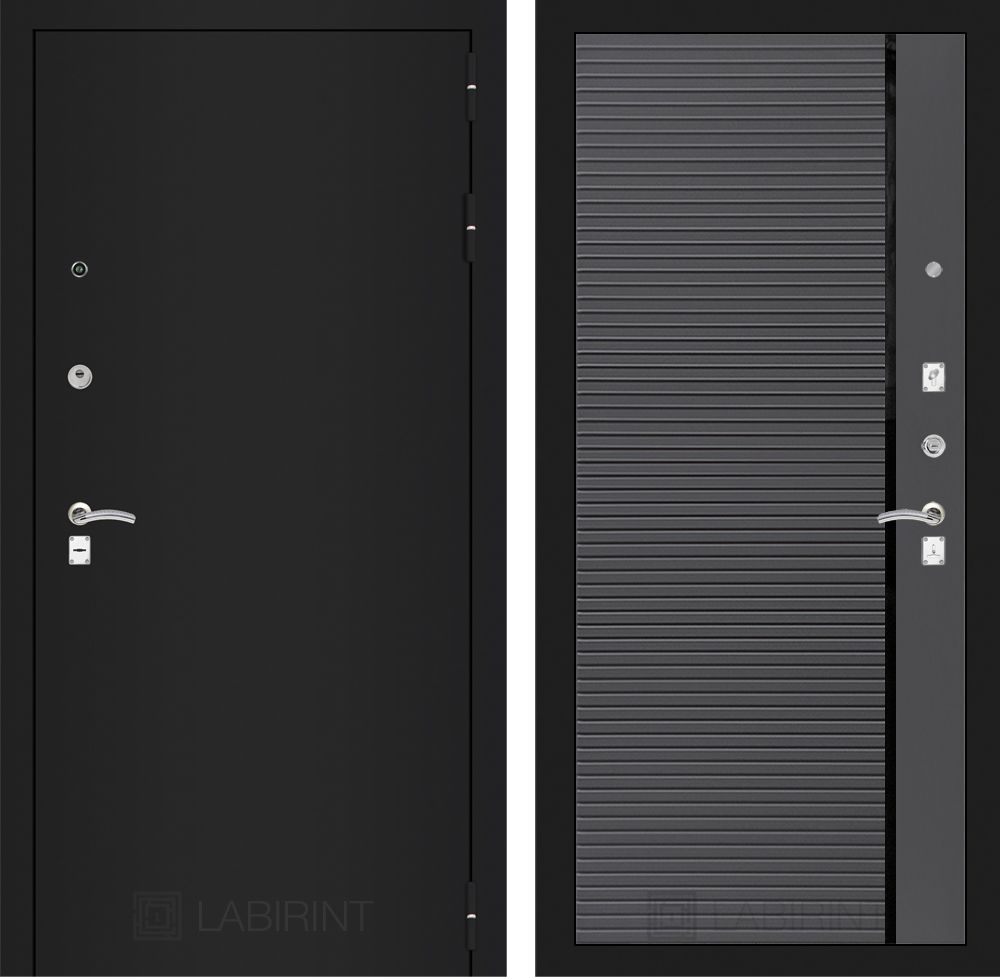 Входная дверь Лабиринт CLASSIC шагрень черная 22 - Графит софт, черная вставка