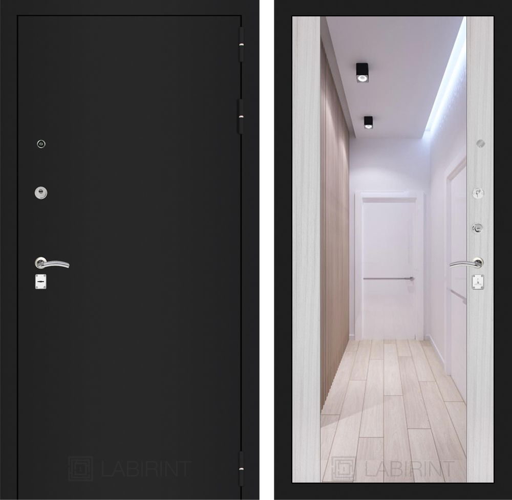 Входная дверь Лабиринт CLASSIC шагрень черная с Зеркалом Максимум - Сандал белый
