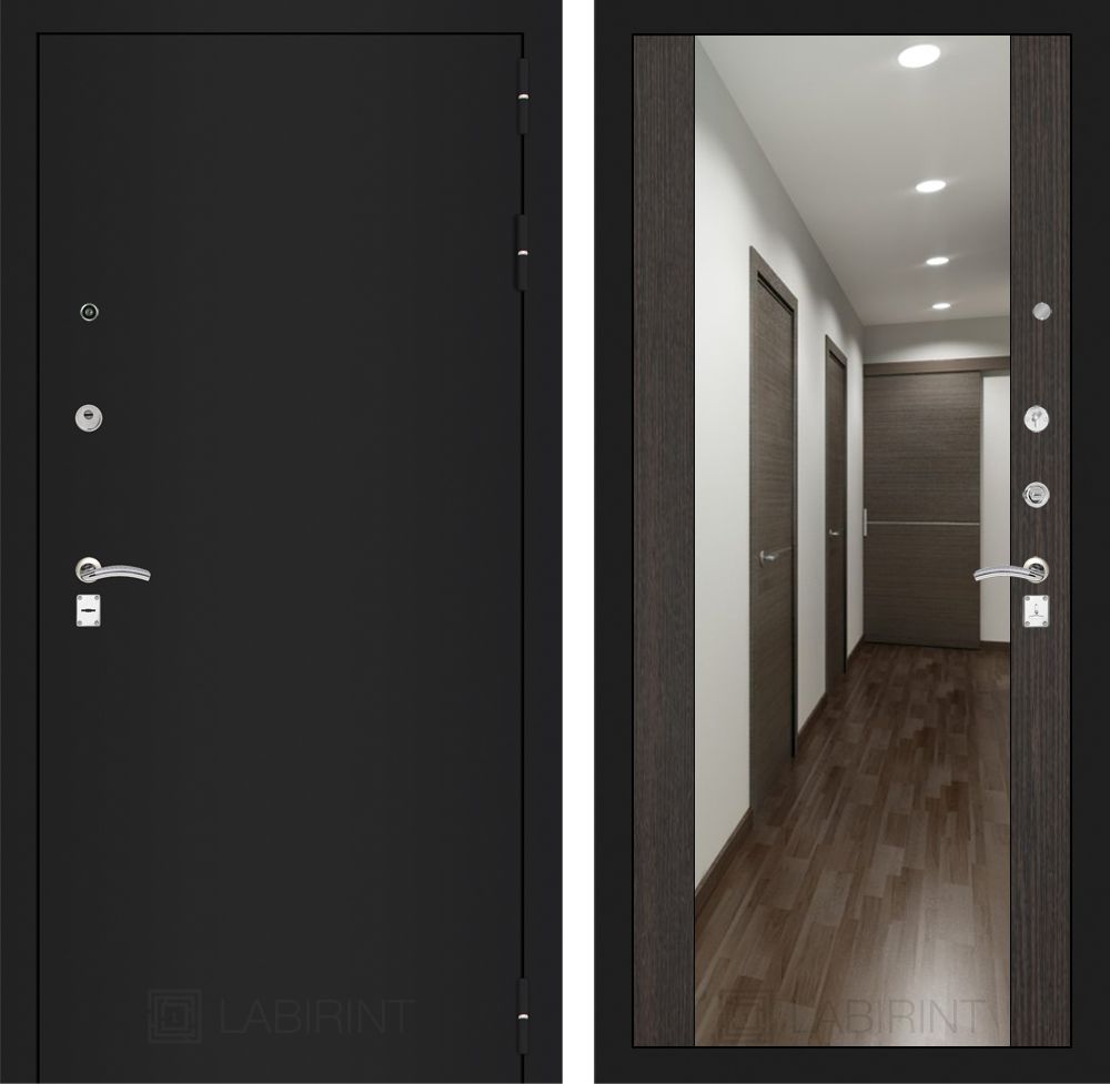 Входная дверь Лабиринт CLASSIC шагрень черная с Зеркалом Максимум - Венге