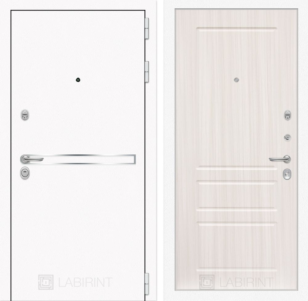 Входная дверь Лабиринт Лайн WHITE 03 - Сандал белый с фрезеровкой, надежная защита и утепление