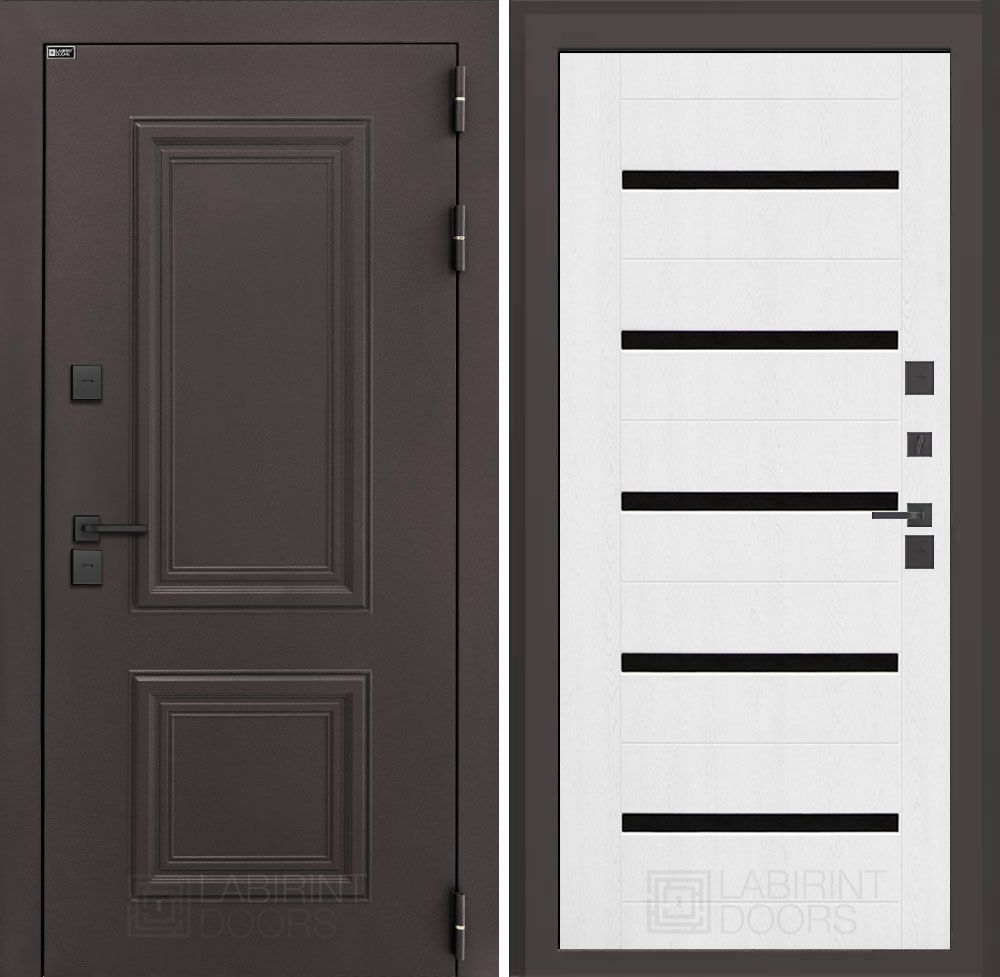 Входная дверь Лабиринт Полярис лайт - 01 Белое дерево, стекло черное