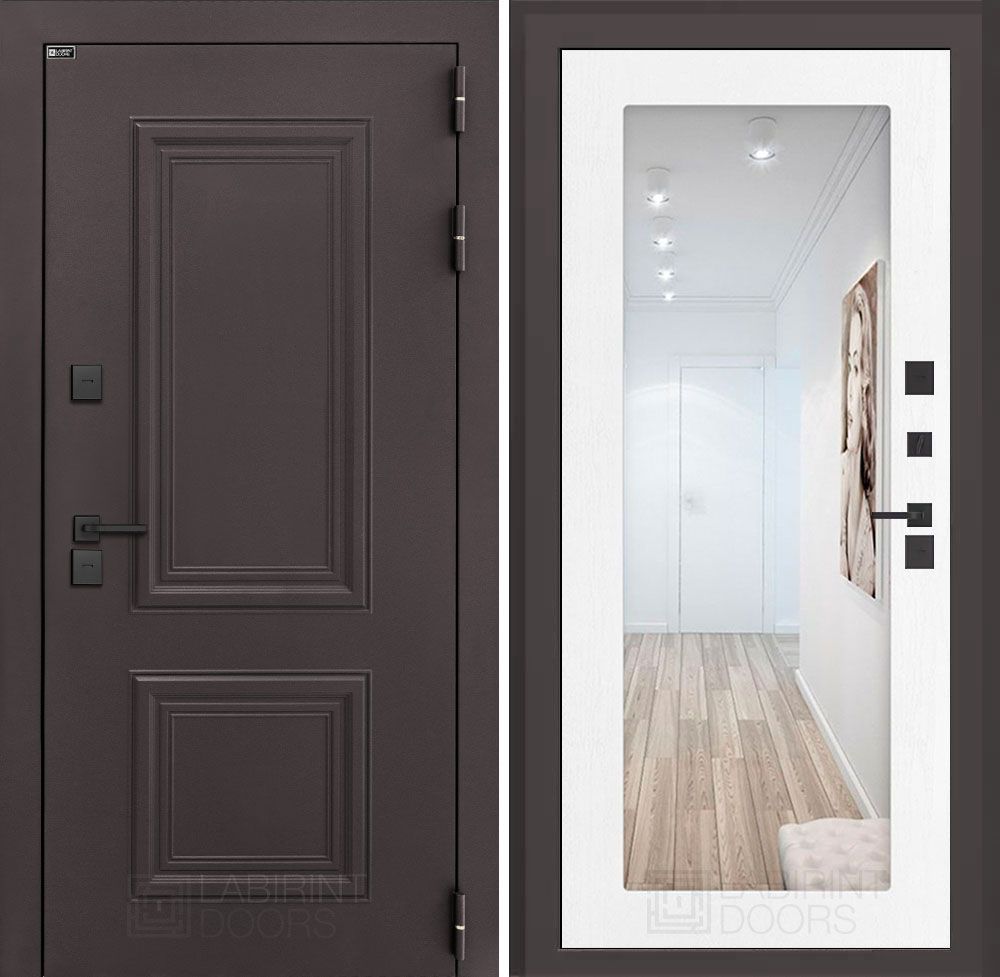 Входная дверь Лабиринт Полярис лайт 18 – Белое дерево с зеркалом