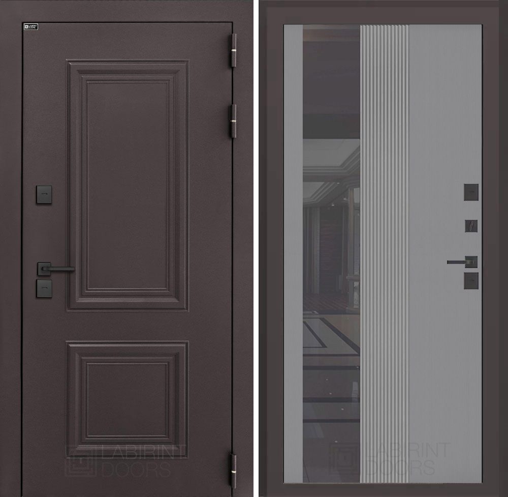 Входная дверь Лабиринт Полярис лайт - 32 – Серый рельеф софт с зеркалом тонированным