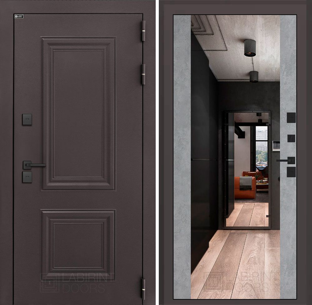 Входная дверь Лабиринт Полярис лайт - Бетон светлый с Зеркалом Максимум
