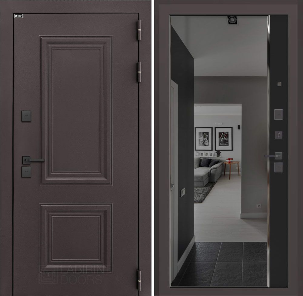 Входная дверь Лабиринт Полярис лайт - Черный кварц с тонированным зеркалом Панорама