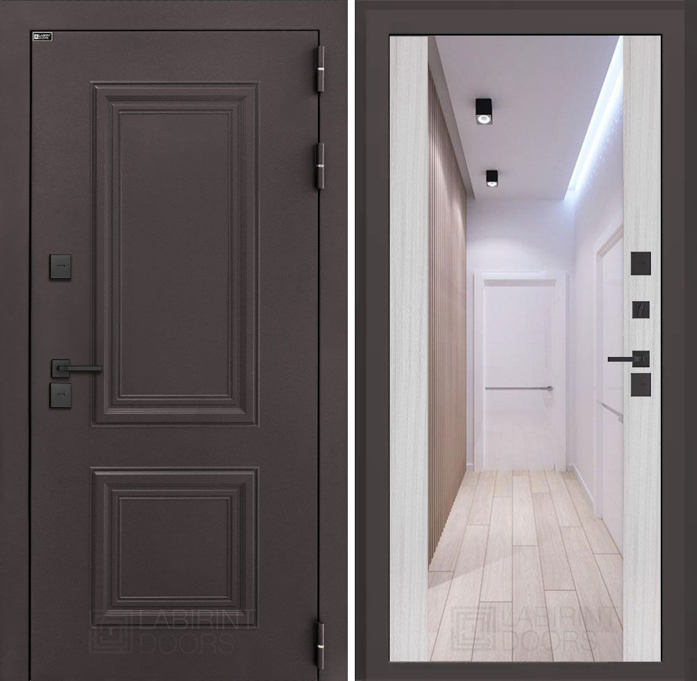 Входная дверь Лабиринт Полярис лайт Сандал белый с зеркалом Максимум