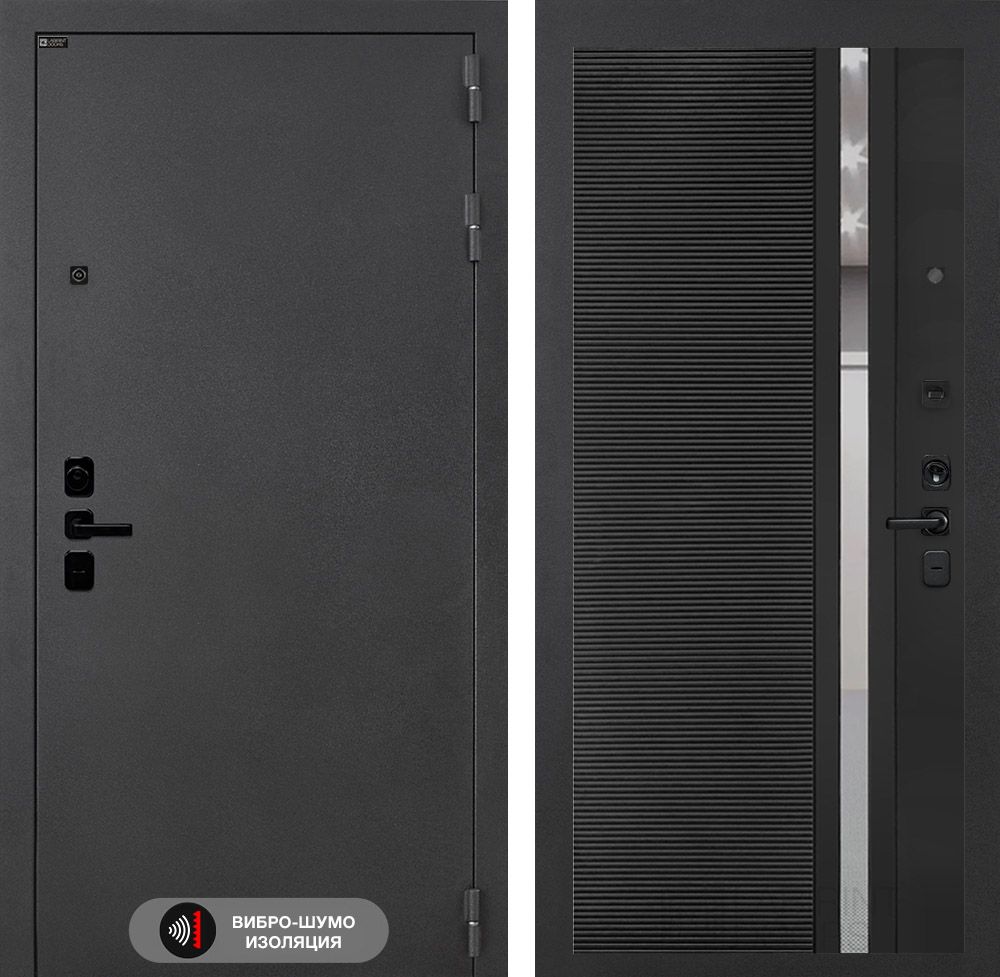 Дверь Соналаб - 31 Черный кварц, зеркальная вставка, высокая теплоизоляция и безопасность