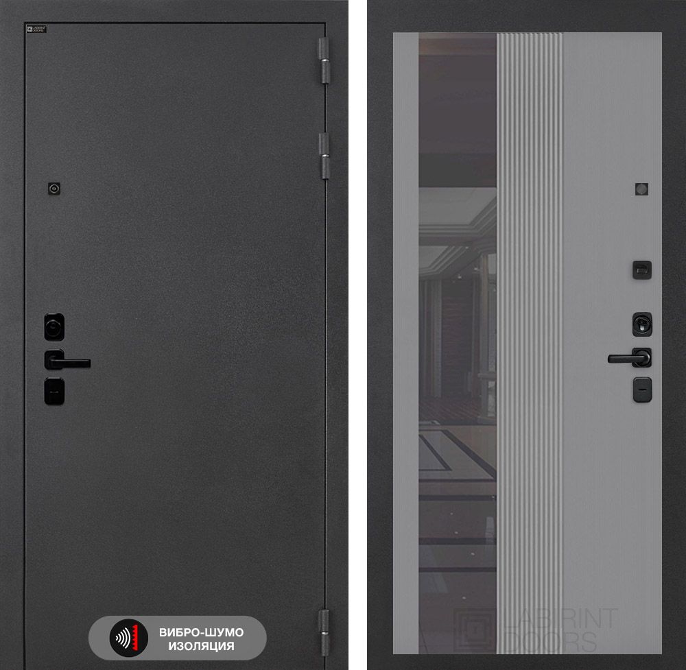 Входная дверь Лабиринт Соналаб - 32 с Зеркалом тонированным Серый рельеф софт