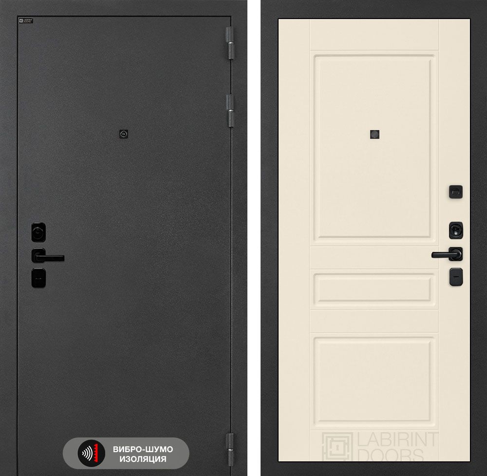 Входная дверь Лабиринт Соналаб 02 в цвете "Сандал белый" с черным стеклом — идеальное решение для квартиры или офиса. Толщина металла 1,8 мм и 2 усиливающих ребра жесткости обеспечивают надежную защиту. Благодаря 3 контурам уплотнения и акустическому вибропоглощающему материалу Смартмат Фаворит 15, дверь эффективно изолирует шум и вибрации. Утепленное полотно и короб из базальтовой плитки гарантируют комфорт. Двухсистемный замок Гардиан 75.14 ReStart обеспечивает высокий класс безопасности. Гарантия - 1 год на установку и дверь. Доставка по Москве и регионам РФ.