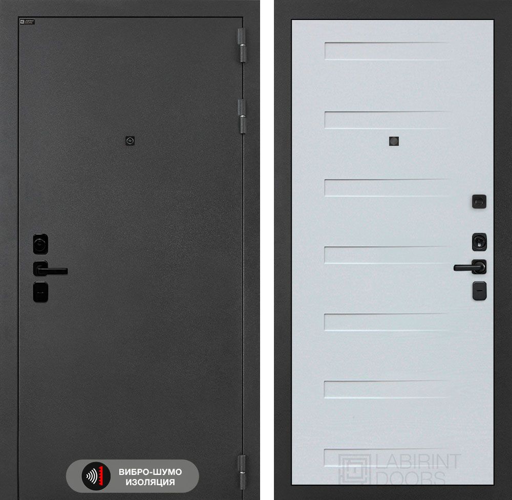 Входная дверь Лабиринт Соналаб 13 - Белый софт идеально подходит для установки в квартиры и офисы. Изготовленная из высококачественной стали толщиной 1,8 мм с двумя усиленными ребрами жесткости, эта дверь обеспечивает надежную защиту и долговечность. Утепленная конструкция с базальтовой плитой и тройным контуром уплотнения гарантирует комфорт в любое время года. Двухсистемный замок Гардиан 75.14 обеспечивает максимальную безопасность. Элегантный дизайн с декоративной MDF панелью и матовым покрытием "Муар серый" дополнит любой интерьер. Доставка по Москве и РФ.